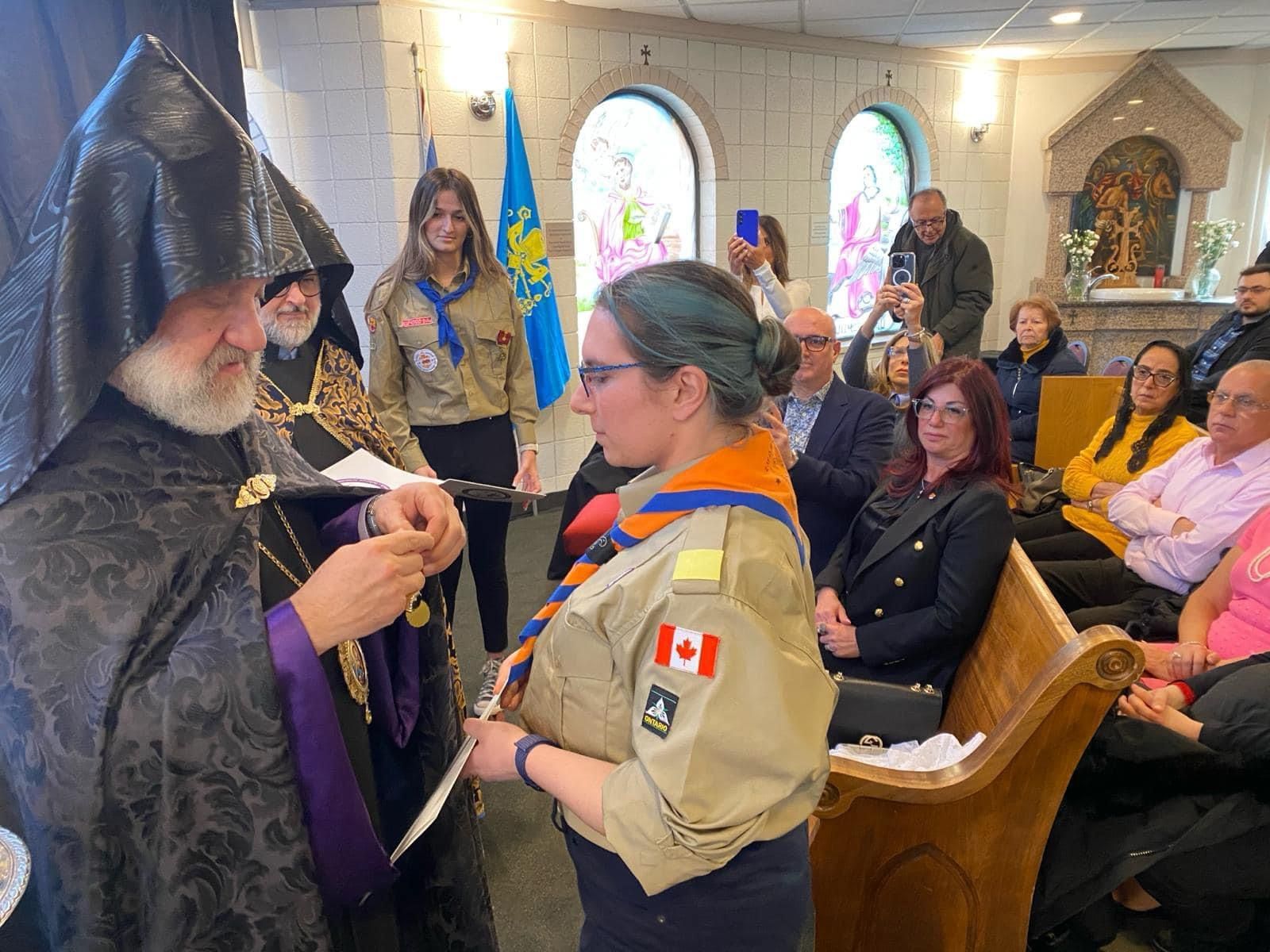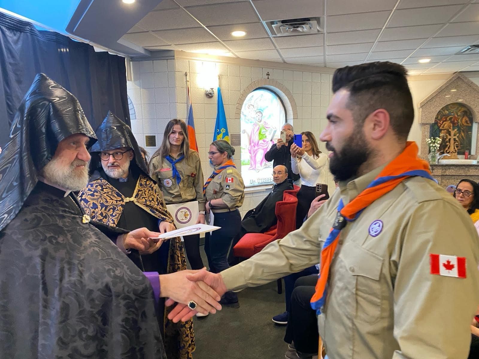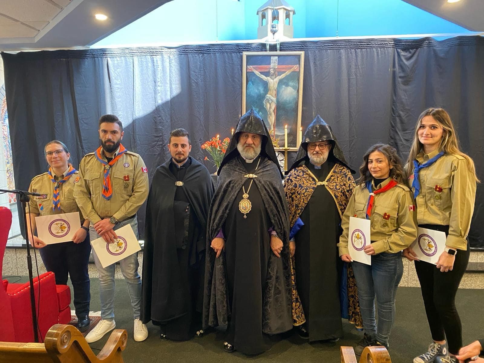 Որմէ ետք, ձեռամբ Առաջնորդ Սրբազան Հօր, «Ս. Ղեւոնդ Երէց» կրօնական շքանշանով պարգեւատրուեցան Գեմպրիճ մասնաճիւղէն 2, Համիլդն 1 եւ Սէնթ Քաթրինզ 1 Հ.Մ.Ը.Մ. սկաուտականներ։